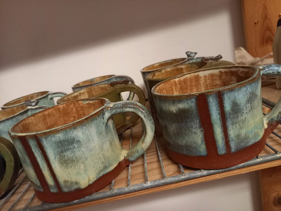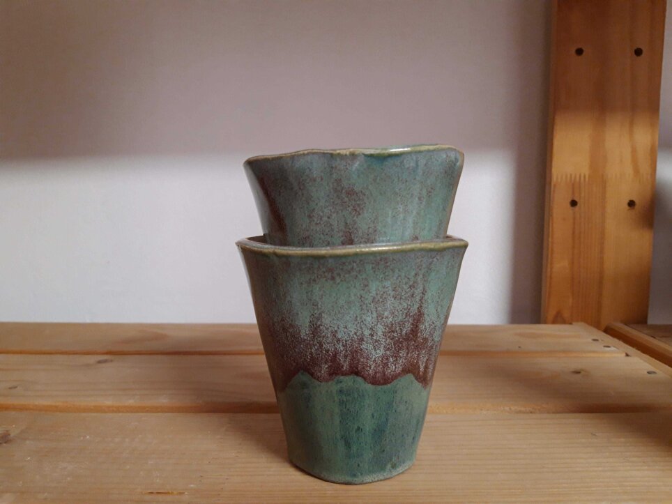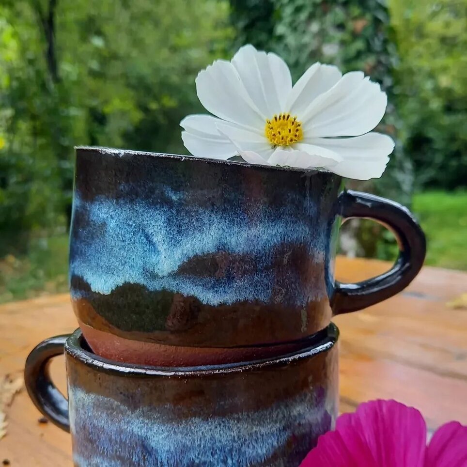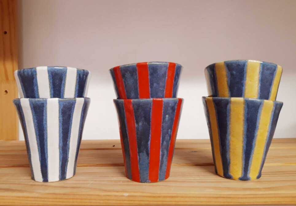 Da portare in tavola con il nostro vino preferito, o per accompagnarci durante la giornata con la nostra tisana rilassante o energizzante. Per l'acqua fresca. Per il caffè quotidiano. Sono tutti in grès ad alta temperatura realizzati a mano, adatti per bevande calde e fredde. Gli smalti che uso e combino sono tutti ad uso alimentare.