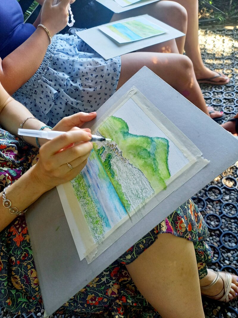 rilassati gustando un aperitivo mentre sperimenti la tecnica della pittura con waterbrush e pastello acquerellabile.