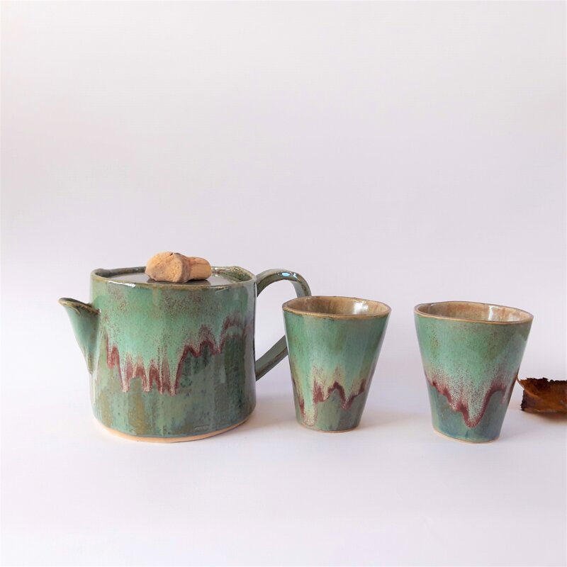 Teaset, 75cl Stoneware and seawood (Porto's shore, Corsica 2016), linen twine suitable for food. The name, a little changed, comes from my watergreen streaked with red garnet glaze.